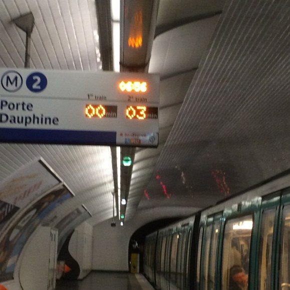 Ce matin, je suis donc partie à 9h20. Arrivée à 9h35 sur le quai de Charles de Gaulle Etoile pour découvrir qu’il y avait de gros soucis. Le prochain rer était annoncé pour 20mn plus tard et allait donc arriver noir de monde. J’ai hésité 2mn puis suis repartie en sens inverse pour récupérer le rer B à Gare du Nord.